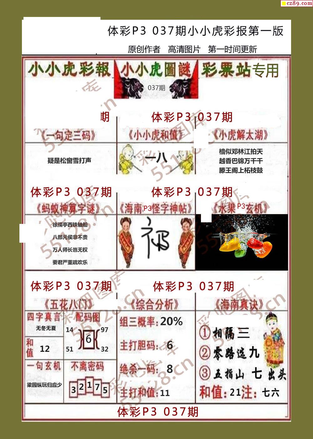 小小虎彩报037期体彩p3图谜